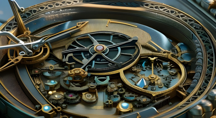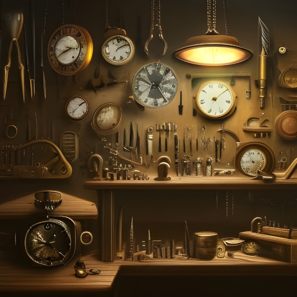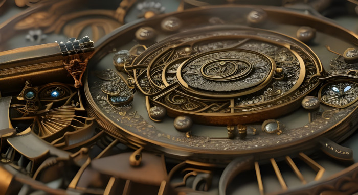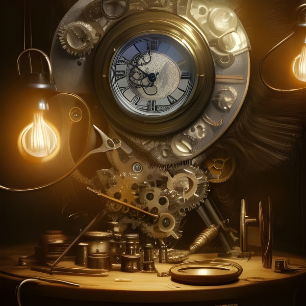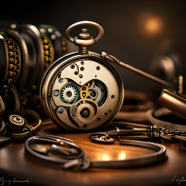 Pocket watches and clocks created on NightCafe with a prompt like - in the shire we see the inside of a pocket watch on a wood table with watchmaker's tools, hundreds of tiny gears, jewels, hyper detailed, sharp focus - and the Dark Fantasy preset. All Images are public domain.