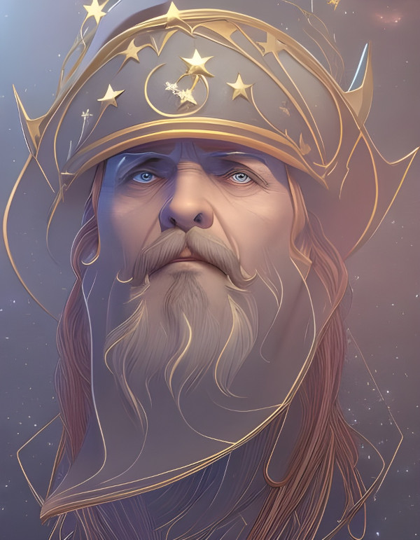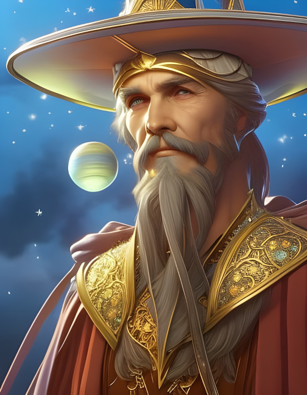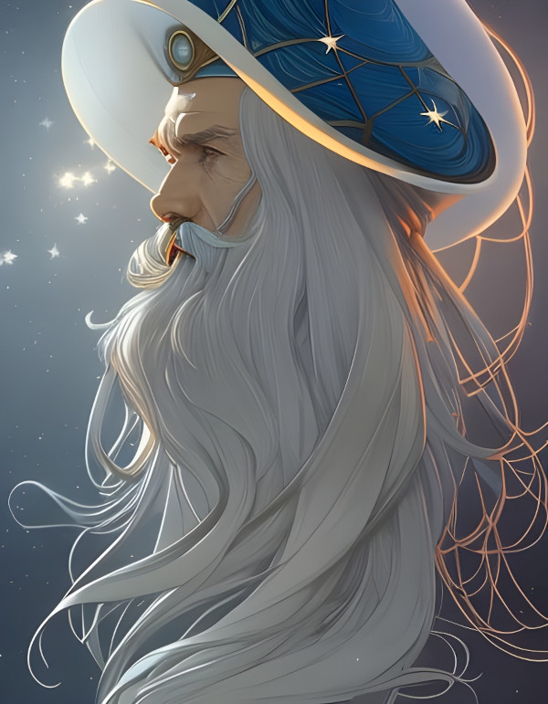 Created on NightCafe with prompt - old wizard with pointy hat, stars and planets decorate the hat, head and shoulders portrait, 8k resolution concept art portrait by Greg Rutkowski, Artgerm, WLOP, Alphonse Mucha dynamic lighting hyperdetailed intricately detailed Splash art trending on Artstation triadic colors Unreal Engine 5 volumetric lighting